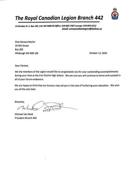 442 Erin Legion Award 2022